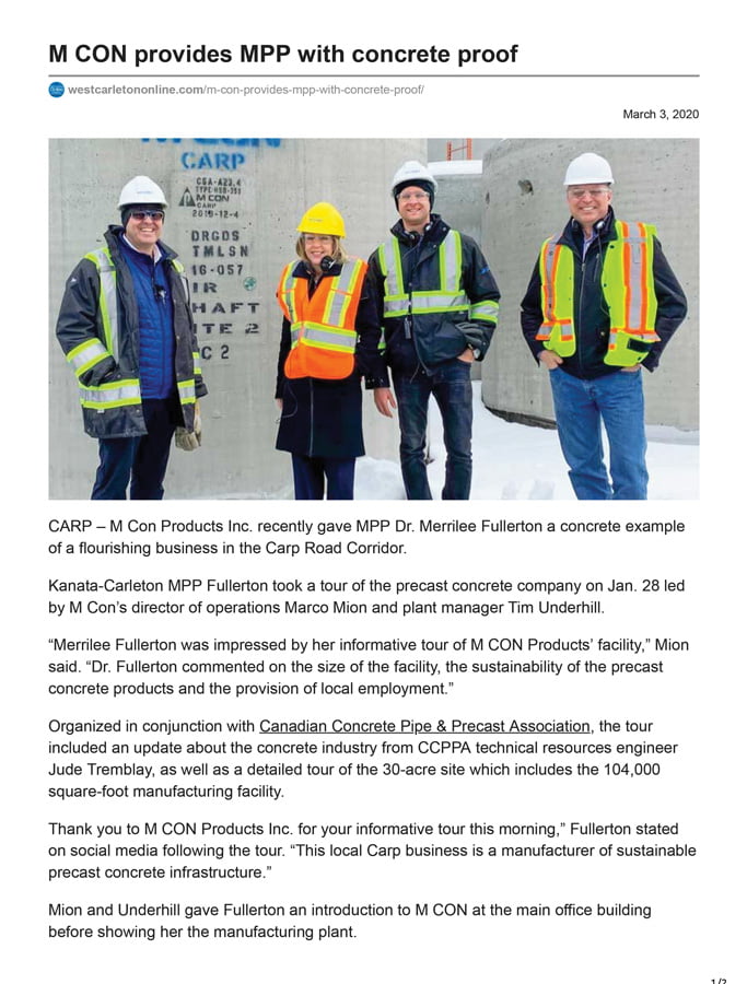 CCPPA – Mayor of Ottawa, Jim Watson Tours M CON Products Production Facility