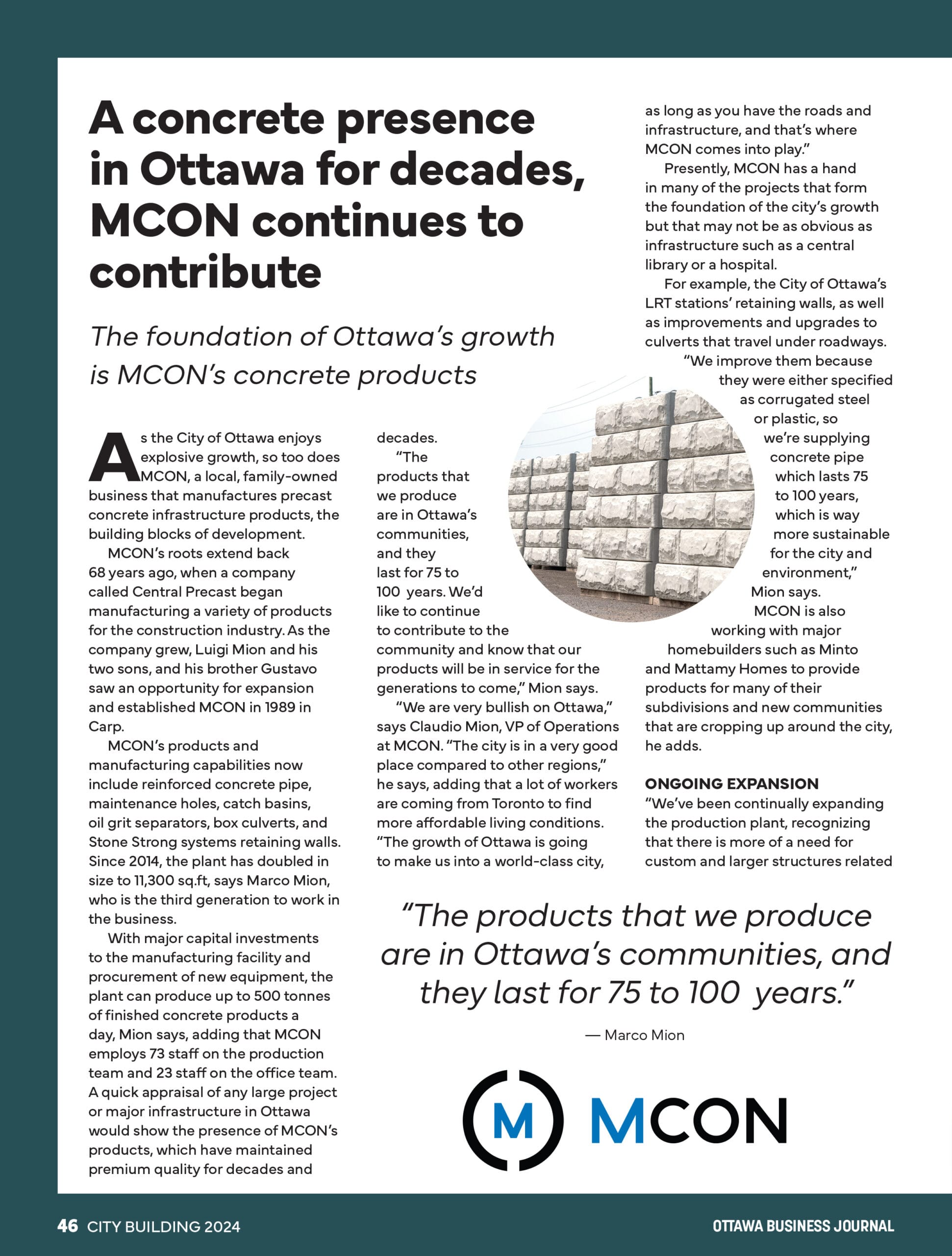A concrete presence in Ottawa for decades, MCON continues to contribute