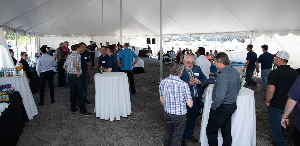 At the start of the event, guests had the chance to have their photo taken inside the largest available pipe. This was followed by a catered luncheon under a large tent. A large range of products and machinery was on display as guests mingled, and staff conducted tours of the plant. Guests were able to see the whole facility, with a stop in each department to showcase all steps of the manufacturing process. They were also shown its expanding production capacity, including the new batching process and larger production bays which were introduced in 2016. The event was the first of its kind, with the largest groups of tours visiting since the additions.