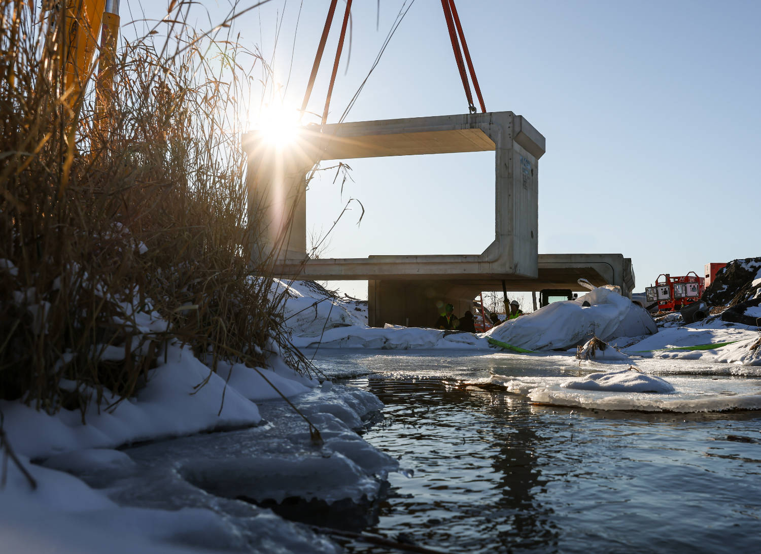 The Township of North Dundas sought to upgrade the Cayer Road Bridge in order to ensure a stable road surface and a steady water flow for many years to come. The replacement plan for the Cayer Road Bridge, developed by Jacobs Engineering Group in collaboration with the township and Willis Kerr Contracting Ltd., called for a new precast box culvert to take the place of the existing single-span concrete rigid frame bridge. For this application, a box culvert with a 5700 mm span and 2700 mm rise was selected.