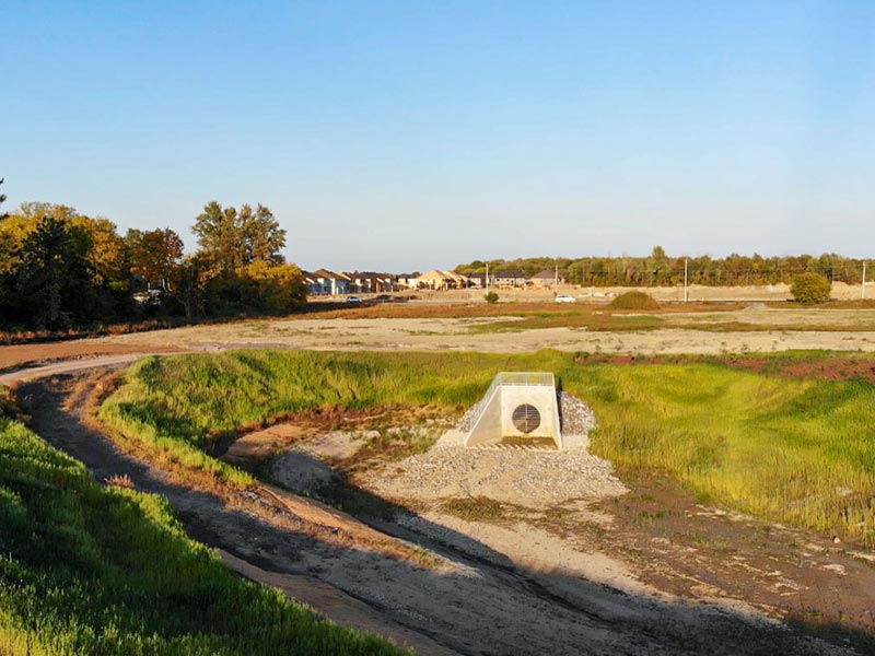 MCON’s precast Segmental Headwalls accelerated the construction of a new storm pond on River Road, Ottawa, ensuring the project was completed on time and on budget, despite the weather. Being located across the road from the Rideau River and the pond, the new housing development in Riverside South required a storm pond with large diameter concrete storm pipe inflows.