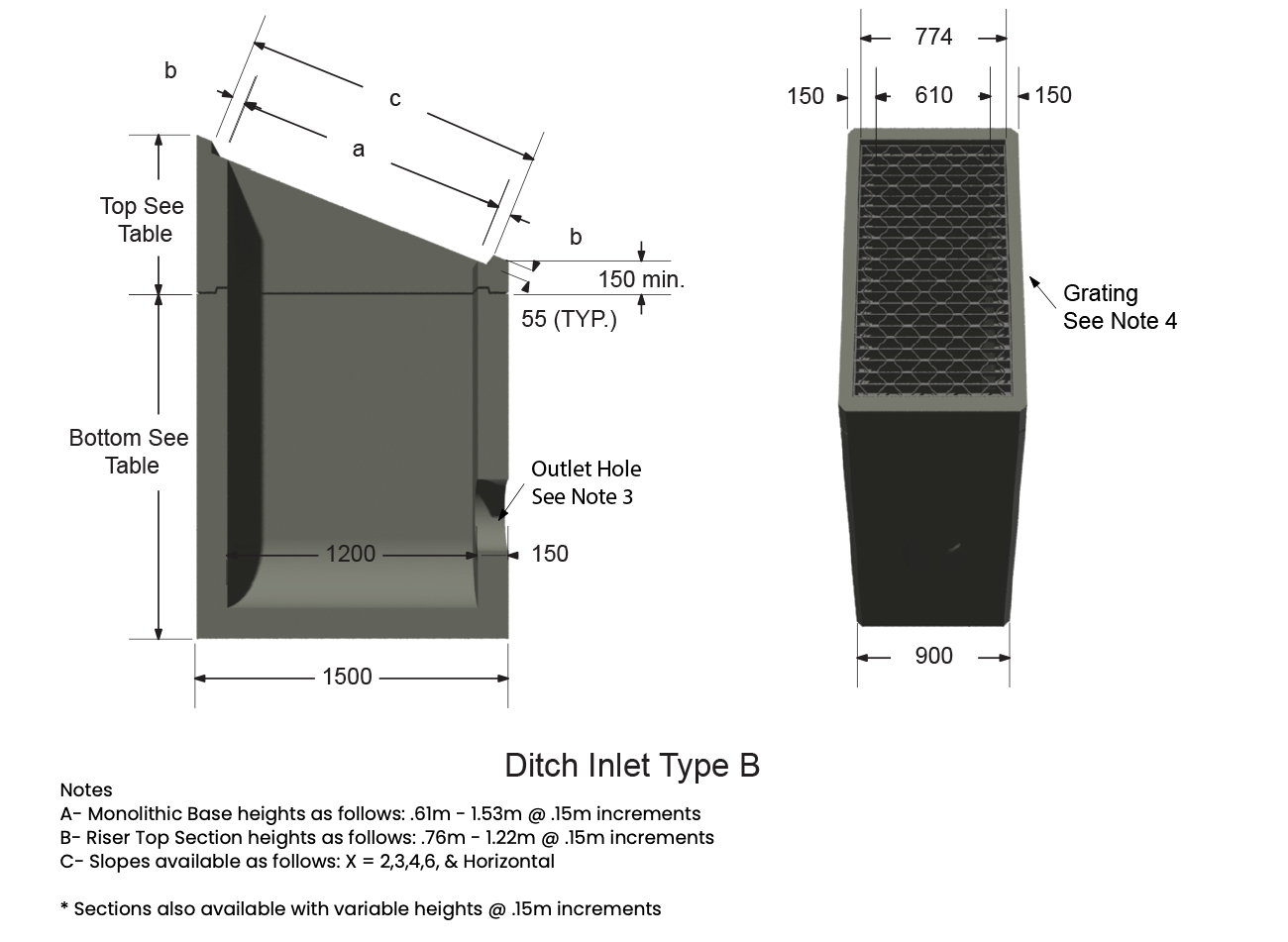 | Grate Type | Grate Slope | a | b | c |