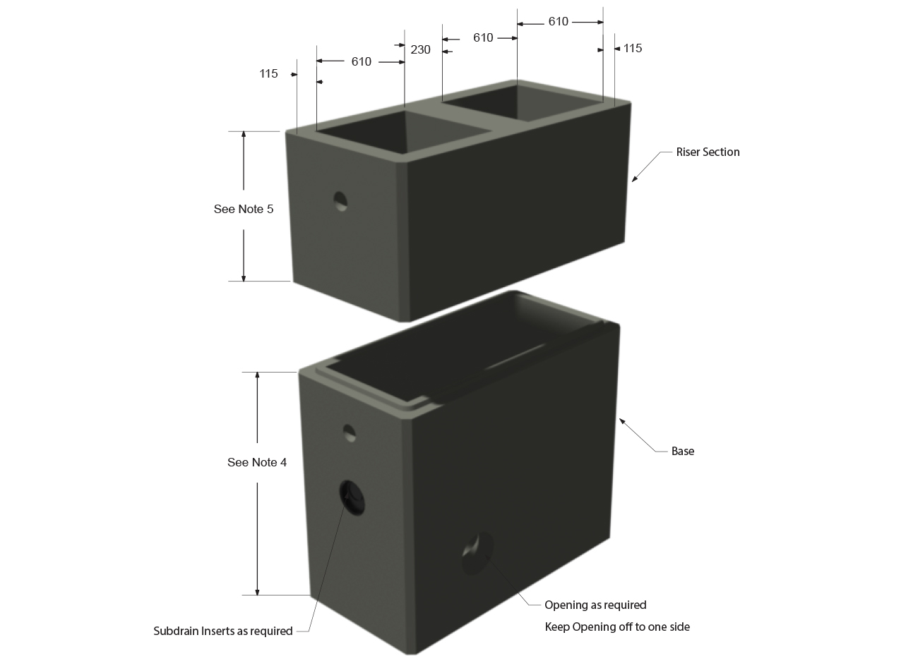 600 x 1450mm Twin Inlet Catch Basin Ottawa