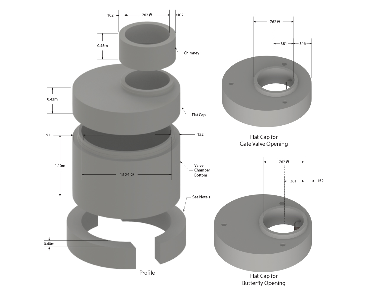 Valve Chamber Base Sets as per City of Ottawa Standard W-5. See