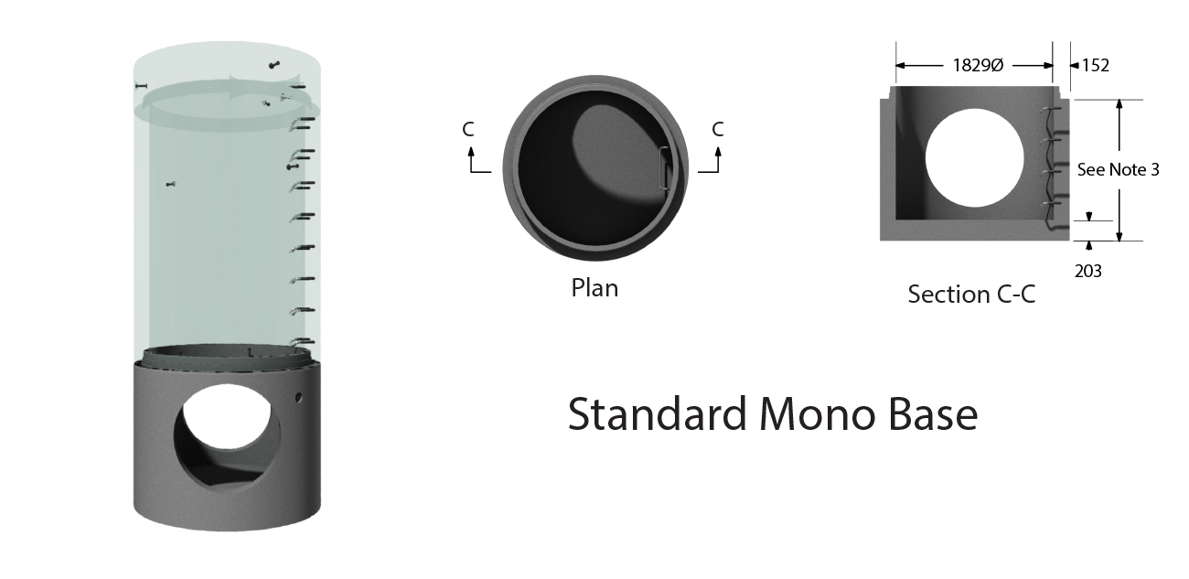 Available mono base heights – 610, 914, 1067, 1219, 1372, 1524, 1676,1829, 1981, 2134, 2286 and 2438.