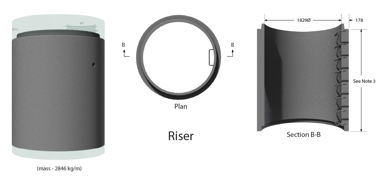 Available riser section heights – 305, 610, 914, 1219, 1524, 1829, 2134 and 2438.