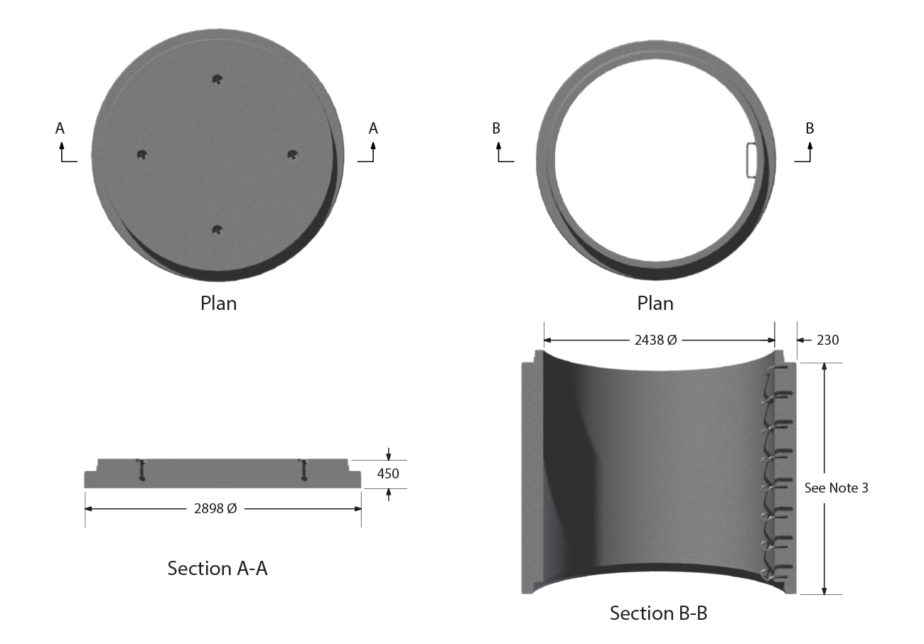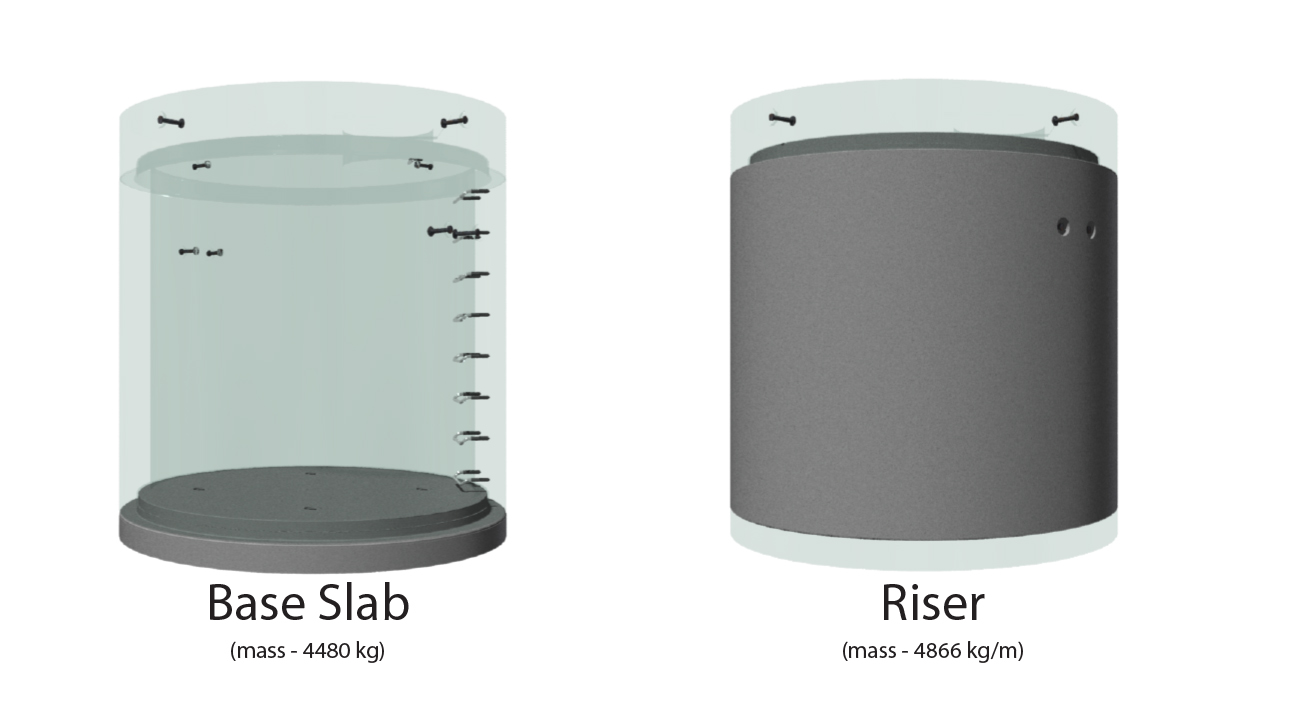Available riser section heights – 610, 914, 1219, 1524, 1829, 2134, and 2438.