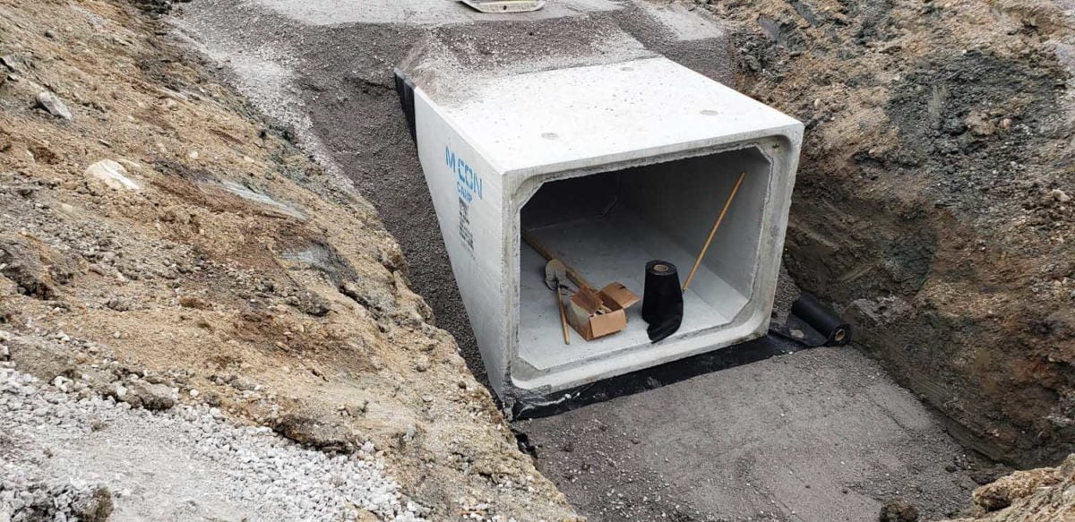 Although we do manufacture precast bends, it was decided that it would be best that Tomlinson cast the bend on site to complete the connection from the existing culvert to the new extension that was being installed. MCON was able to produce the desired custom sized precast box sections that allowed for accelerated installation of the structure.