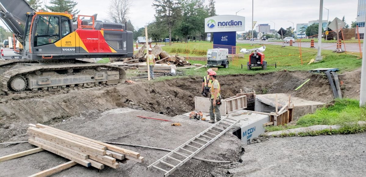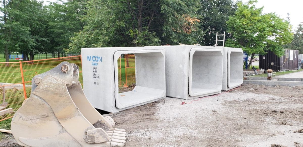 MCON partnered with Greenbelt/Tomlinson to construct an extension of an existing culvert at the Nordion complex in the Kanata North Business Park near Goulbourn Forced Road.We worked directly with the consultants at IBI and WSP to manufacture the culvert extension.