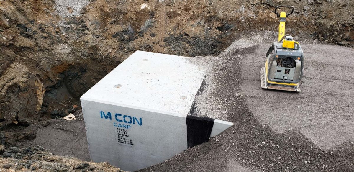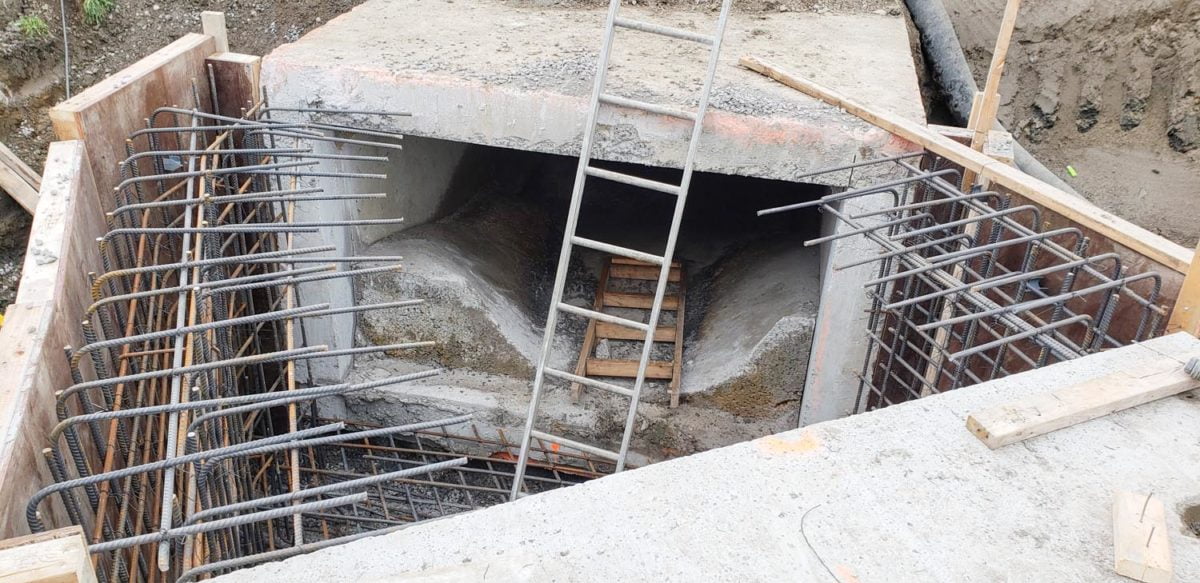 Although we do manufacture precast bends, it was decided that it would be best that Tomlinson cast the bend on site to complete the connection from the existing culvert to the new extension that was being installed. MCON was able to produce the desired custom sized precast box sections that allowed for accelerated installation of the structure.