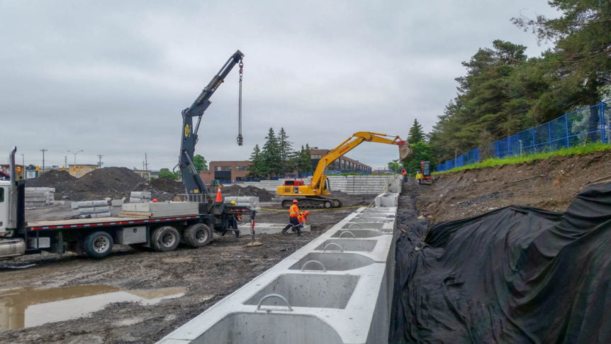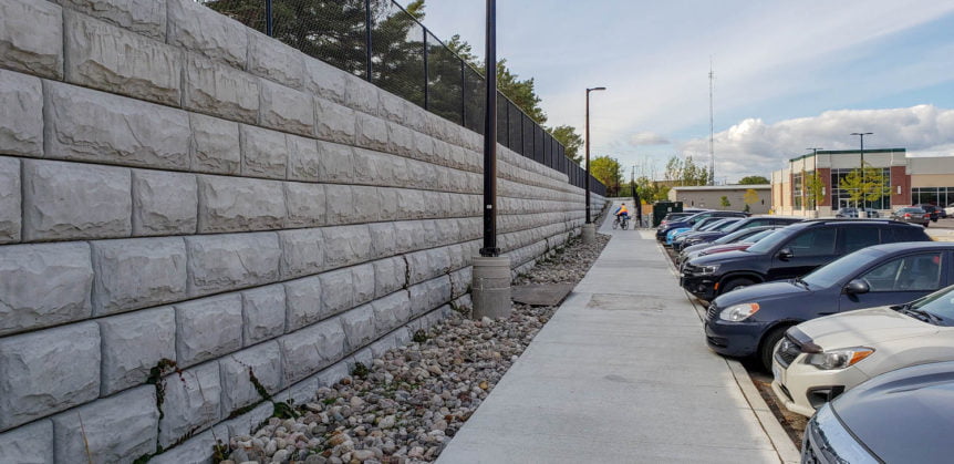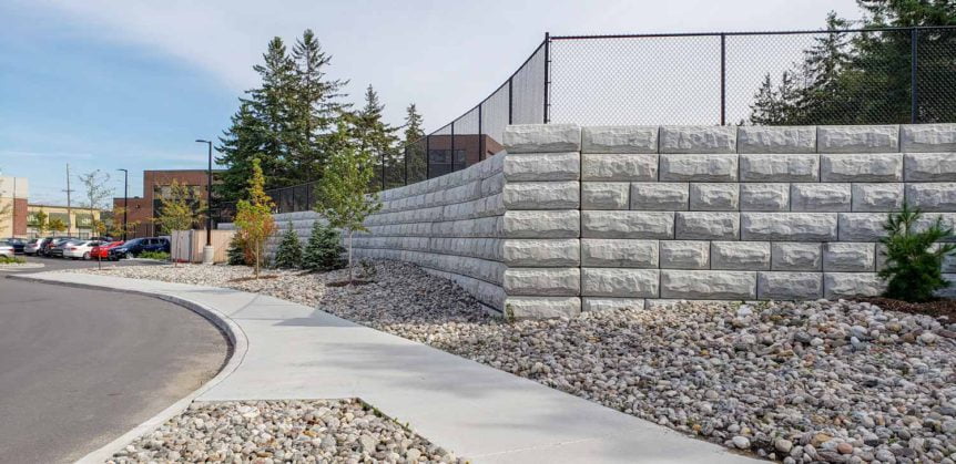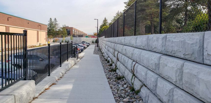 With the contract requiring a large-scale retaining wall, MCON joined up with Ashton Landscaping to propose the use of Stone Strong.This proposal was accepted and Paterson Group was quick to come up with the engineering and design to build this wall.