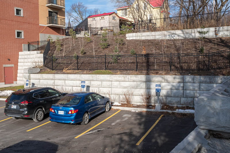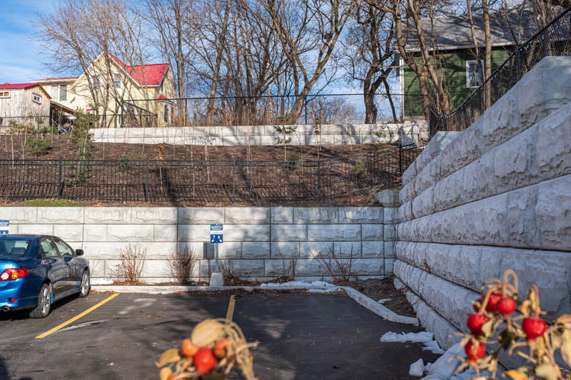 Today, the wall stands proud as one of MCON’s first terraced Stone Strong walls.