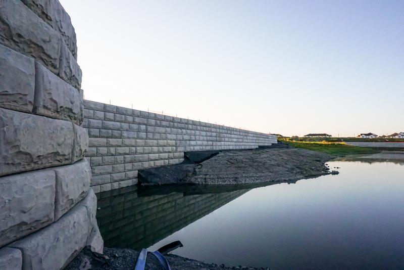 The contractor, ASL, approached MCON for a solution as there was a shortage of the natural stone product they were originally planning to use for the retaining walls.