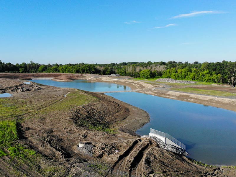 MCON’s precast Segmental Headwalls accelerated the construction of a new storm pond on River Road, Ottawa, ensuring the project was completed on time and on budget, despite the weather. Being located across the road from the Rideau River and the pond, the new housing development in Riverside South required a storm pond with large diameter concrete storm pipe inflows.