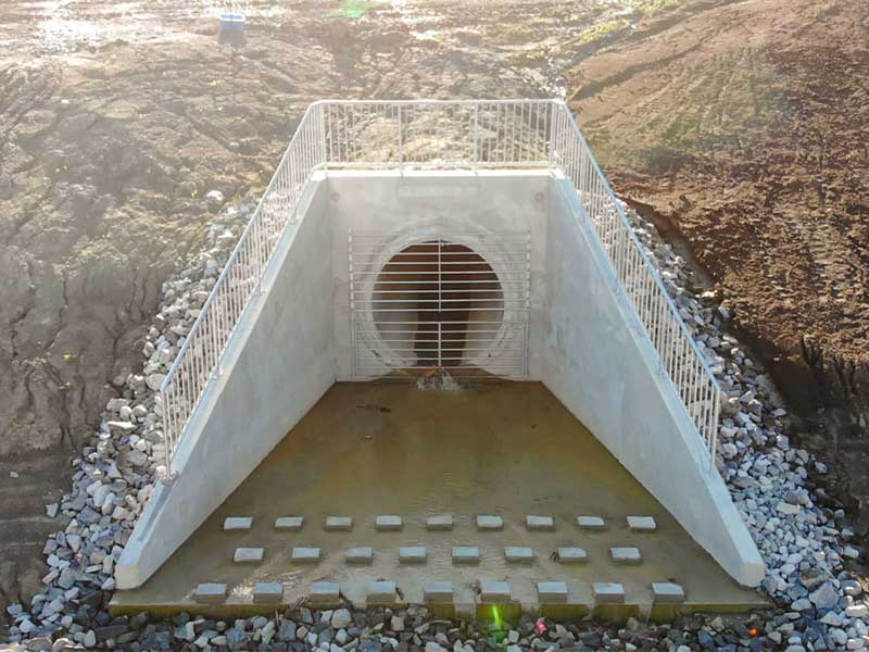 When Tomlinson approached MCON, the precast manufacturer had recently come up with a design for a Segmental headwall. Shop drawings were then created for 1950 mm, 2100 mm, and 2400 mm headwalls, so the alternatives could be approved by the contractor. Once Tomlinson approved the design, the concrete pieces for the Segmental Headwalls were quick and easy to produce in our plant and were cast ahead of time so the products were ready for installation when needed.