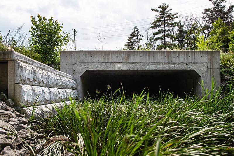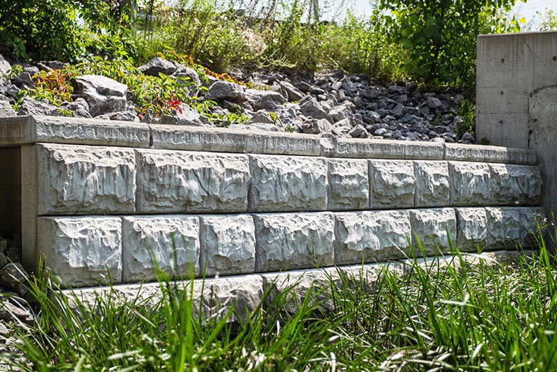 In light of the future widening of Prince of Wales Drive in Ottawa, ON, a new culvert was required for the upcoming four-lane configuration. Due to the proximity of an existing sanitary trunk sewer and a bend in the creek alignment, an 18000 x 9500mm custom cast-in-place transition structure was required. MCON’s culvert was designed to perfectly match this structure, including a custom connection detail. In addition to the culvert, there was a requirement for a small retaining wall to act as a wing wall off the one end of the culvert. Armour Stone was originally specified. However, due to issues sourcing material, MCON proposed Stone Strong as an alternative. Stone Strong was accepted, which kept the project on time and in budget.