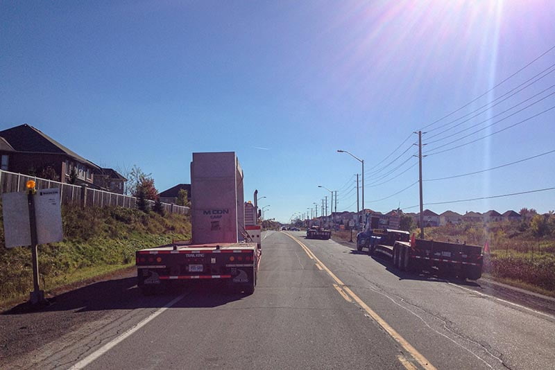 GM BluePlan Engineering designed the steel for 29 standard and four special 6000mm x 2600mm x 350w x 1.318m precast concrete box culvert components. With the increased handling capacity that MCON has today, this culvert could be made in 20 pieces instead of 33, drastically improving production and installation schedules. Prince of Wales Drive is one of the main roads travelling north and southbound to downtown Ottawa. As a result, a weekend road closure was recommended for the installation of this culvert. Working with local brokers, a few trucks were pre-loaded on the Friday afternoon. The remaining trucks were loaded and sent to the site on the Saturday. All 33 pieces were delivered and installed successfully in only one day, enabling Karson to begin quickly sealing the joints and backfilling.